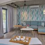 Il Into The Blue Suites si trova ad Arkadiko Chorio, a circa 25 minuti a piedi dai Kryoneri beach, e offre servizi benessere come una piscina con trampolino. Quest'appartamento dispone di una piscina a sfioro e di una terrazza prendisole con vista sul mare.